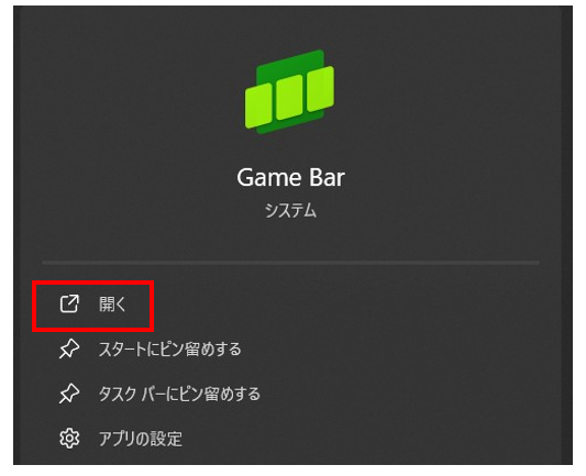 また「ゲームバー」から録画することもできます。この場合は「Windows」+「G」を同時に押して、ゲームバーを起動します。